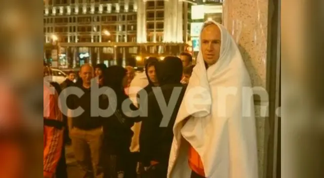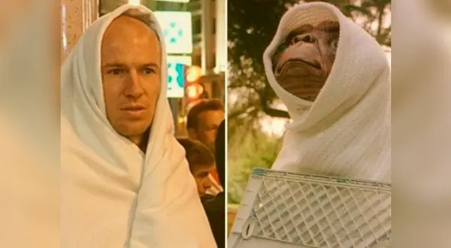 MemesdeArjen Robbencirculan en lasredes socialesdespués de ser fotografiado en los exteriores de un hotel de Moscúcubierto con una manta encima de su cabeza después de activarse la alarma de incendio.