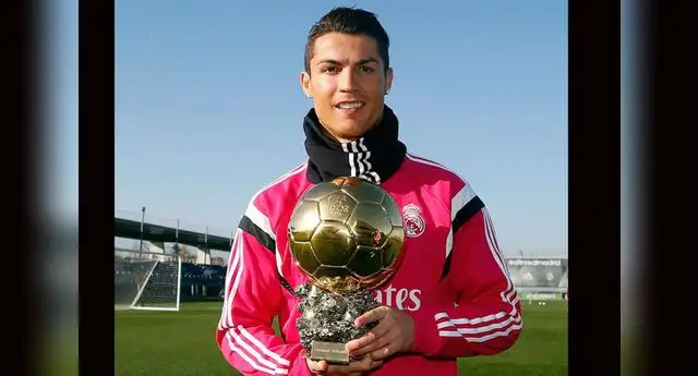 Antes del entrenamiento, el luso se tomó una fotografía sobre el césped de la ciudad deportiva de Valdebebas junto al resto de sus compañeros, sujetando el Balón de Oro que lo reconoce como el mejor jugador del planeta en 2014.