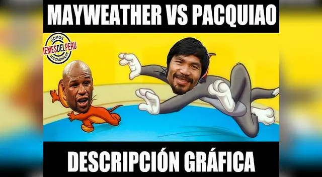 La esperada 'Pelea del Siglo' entre Floyd Mayweather y Manny Pacquiao generó desazón en la afición boxística, ya que las críticas fueron en la manera como 'Money' ganó por decisión unánime.MIRE ESTO: Floyd Mayweather y Doralie Medina: su ostentosa vida en InstagramAnte esto, los cibernautas mostraron su malestar a través de los divertidos memes, donde también salió 'ganador' el estadounidense.Hasta el momento, Mayweather sigue una racha invicta de 48 victorias (26 por nocaut) al superar a 'Pacman' por 118-110, 116-112 y 116-112.Además, se adjuntó el cinturón de la Organización Mundial de Boxeo (OMB) que pertenecía a Pacquiao.