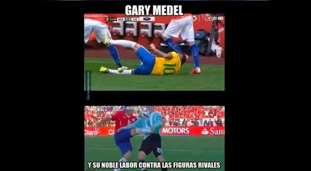 La brutal patada del chileno Gary Medel a Lionel Messi generó una ola de comentarios en las redes sociales, donde los cibernautas sacaron a relucir su historial violento del popular 'Pitbull'.MIRE ESTO: Chile vs. Argentina: bellas mujeres elevaron la temperatura previo a la finalDiversos memes graficaron con humor la acción que le debió costar la roja directa al defensa de "La Roja".Sin embargo, el árbitro colombiano Wilmar Roldán le mostró la amarilla a Medel pese al reclamo de los argentinos.