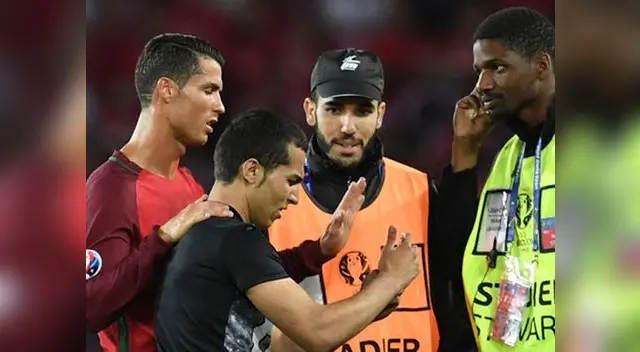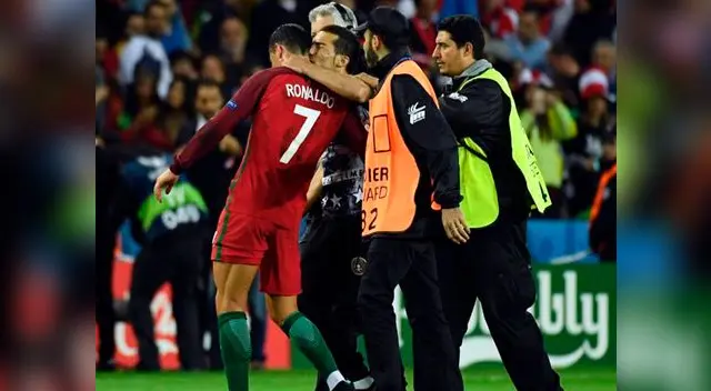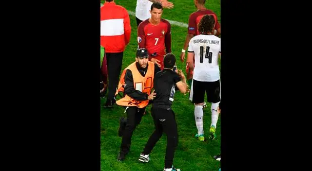 A pesar de la molestia por haber fallado un penal, el delantero Cristiano Ronaldo tuvo un gran gesto con un hincha, que burló la seguridad e ingresó al campo de juego para estar cerca a su ídolo y tomarse una selfie durante la finalización del partido de Portugal vs Austria.