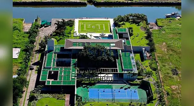 Tiene cerca de 10,000 metros cuadrados cuenta con helipuerto, piscina, pista de tenis, gimnasio y seis habitaciones amplias.