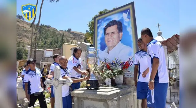 Huaraz. Los jugadores y comando técnico del Sport Rosario acudieron al cementerio Central para rendirle póstumo homenaje a su ex presidente Lombardo Mautino y entregarle el trofeo de campeón de la Copa Perú.