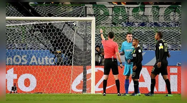 El árbitro Viktor Kassai pasará a la historia por ser el primer árbitro en pitar un penal apoyándose en la tecnología y se equivoca al señalarlo en contra del Atlético Nacional ya que Nishi del Kashima Antlers estaba en fuera de juego.