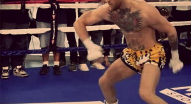 El actual campeón de los pesos ligeros de UFC, Conor McGregor, se enfrentará el próximo sábado 26 de agosto a Floyd Mayweather en lo que será su primera pelea de box. Durante sus sesiones de entrenamiento público realizó una curioso movimiento de calentamiento que ha sido la burla de todos en las redes sociales.