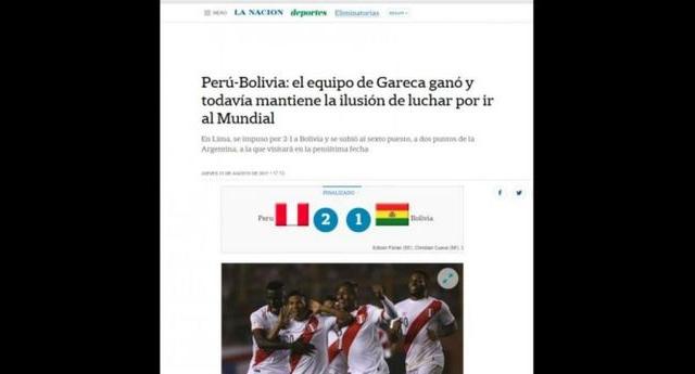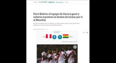 Finalmente, La Nación de Argentina: " Perú- Bolivia: el equipo de Gareca ganó y todavía mantiene con la ilusión de luchar por ir al Mundial ".El País de Uruguay: "Perú no renuncia al sueño".