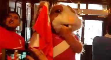 "¡Vamos Perú, carajo!", dijeron un grupo de peruanos que fueron sorprendidos con la presencia de la mascota.