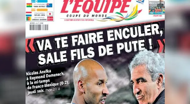 En el entretiempo del partido entre Francia y México, en el Mundial Sudáfrica 2010, el DT Raymond Domenech recriminó al volante Nicolás Anelka por su displicente nivel. El Puma reaccionó de mala forma y le dijo a su técnico: “Agárrate el c... sucio, hijo de p...”. Anelka fue reemplazado por Andre Pierre Gignac. Francia cayó 2-0 y quedó eliminado en primera ronda.