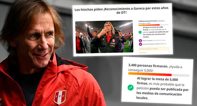 Hasta el momento se han recolectado más de 3.000 firmas de hinchas, quienes han creado una compaña para pedir al Congreso de la República un reconocimiento a Ricardo Gareca por su trabajo con el equipo de Perú.