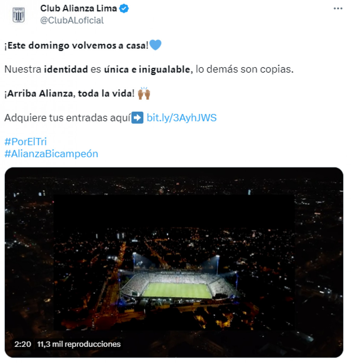 Así se anuncia Alianza Lima previo al partido con Mannucci en su casa