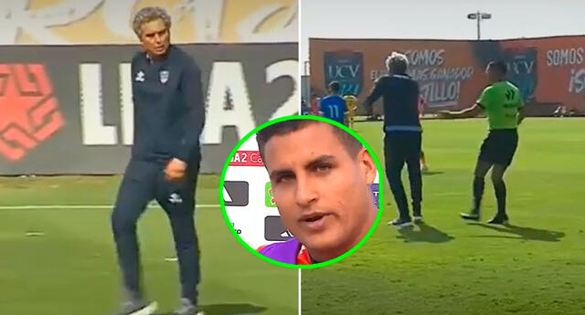 El entrenador de la Universidad César Vallejo no aguantó una acción de su delantero Alexander Succar y se metió a la cancha para recriminarle con todo.