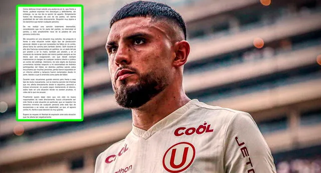 El 'Pitbul' reconoció que en esas ocasiones prefería guardar silencio, pero al ver que lo sancionaron nuevamente, decidió manifestarse, "sobre todo en una situación donde no existen pruebas, ni video de lo que me acusan". Finalmente, el futbolista de Universitario dejó en claro que "Con esto no busco responsables de nada directamente, busco únicamente ser oído frente a esta situación en particular, que se respeten los derechos mínimos de cualquier persona ante este tipo de acusaciones y se actúe con objetividad, ya que, el agravio contra mí, frente a esta decisión es muy grande".