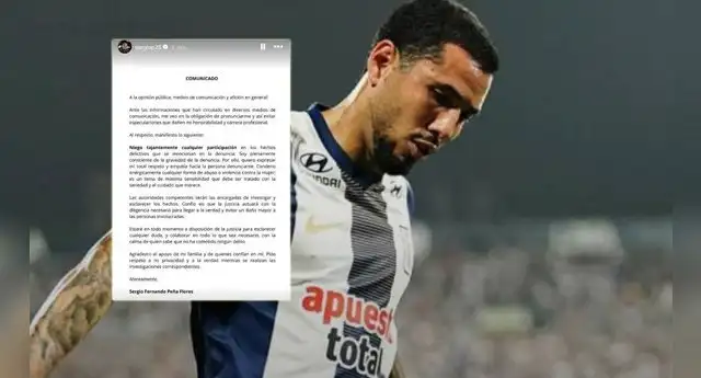 A través de su cuenta de Instagram, el futbolista de Alianza Lima compartió un extenso comunicado para informar públicamente que él no cometió ningún delito en contra de la joven argentina que lo denunció y colaborará con las autoridades para esclarecer el caso.