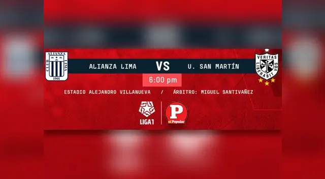 Liga1 | Alianza Lima vs. San Martín: horarios para ver el partido entre Alianza y USMP