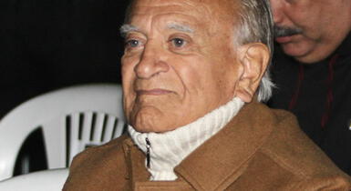 El veterano Humberto Martínez Morosini reapareció en público durante el show de las estrellas salseras. Don Humberto no se animó a mover el esqueleto.