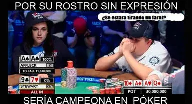 Tal es fueron los comentarios en las redes, que se propagó un meme, en donde se ve a la actriz en una partida de póker, juego en que se convertiría en una experta por su rostro sin gestos.