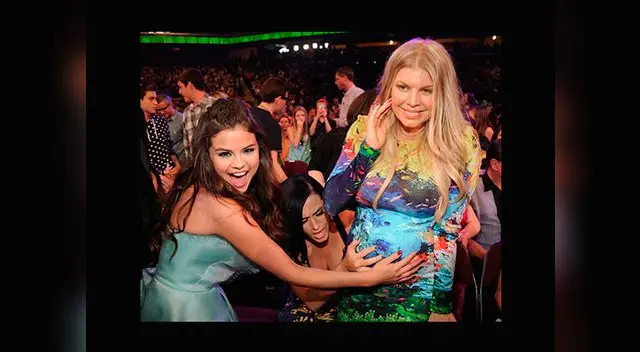 La futura madre fue acompañando a su esposo que está ocasión fue el anfitrión de los Kids Choice Awards. Fergie, de 37 años, lució un vestido corto pegado con estampado de pecera y unos tacones amarillos.