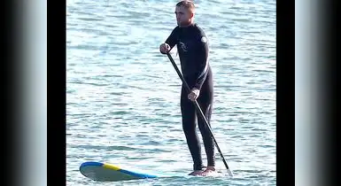 Se le vio en una de las playas de Malibú vistiendo un wetsuit, su tabla y su remo, una vez más solo, cosa que crea serias dudas si de verdad está todo bien entre la parejita.