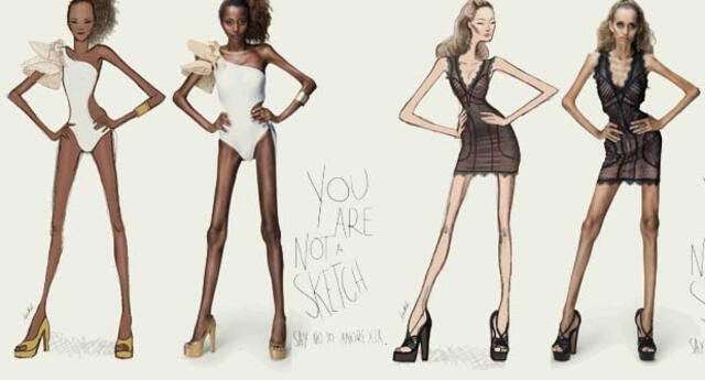 Los graves efectos que produce la anorexia entre aquellas personas que padecen de este desorden alimenticio, ha llevado a crear fuertes campañas como la lanzada en Brasil, bajo el eslogan ´No eres un dibujo. Di no a la anorexia".Debido al fuerte crecimiento de enfermades por trastornos alimenticios, la agencia brasilera Star Models tomó la iniciativa de lanzar dicha campaña para concientizar a las mujeres.“No eres un dibujo. Di no a la anorexia” es el eslogan que utilizó la campaña con el propósito de generar un mayor impacto entre las personas. Los bocetos originales de los diseñadores fueron retocados para lograr un mayor parecido con las modelos que padecen de anorexia.En torno a este mundo del modelaje se sabe que, la misma ex editora de Vogue Australia, Kirstie Clements, afirmó que las modelos pueden llegar a realizar dietas extremas, entre ellas comer pañuelos de papel para no sentir hambre.Cabe destacar el terrible caso de Valeria Levitina, una guapa modelo que a los 39 años es considerado el caso más extremo de anorexia en el mundo al pesar apenas 25 kilos. Valeria fue elegida Miss Chicago en 1994.