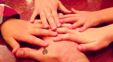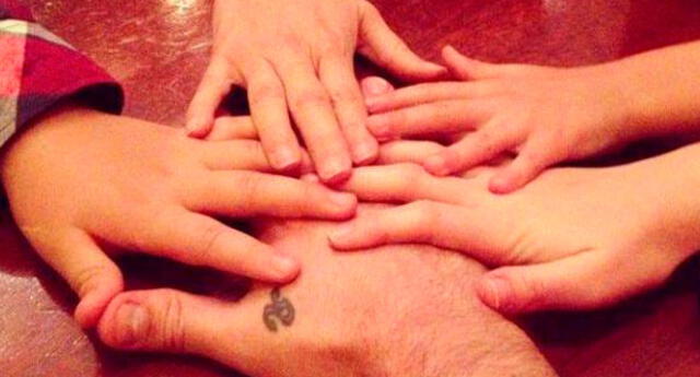 En la fotografía se puede observar las manos de su esposa y de sus tres hijos, y acompañado a esta imagen escribió un mensaje.