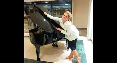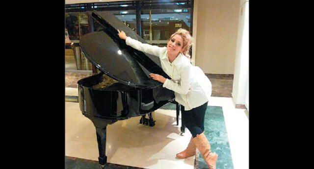 Sofía Franco posa frente al enorme instrumento y parece pedir que la ayuden para cambiarlo de lugar. Ella dice que le encanta la música y que se siente en El aire cuando escucha las melodías del teclado.