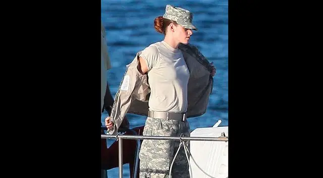 Kristen dista mucho de su acostumbrada imagen de la chica de los sueños de todos los vampiros. Y a juzgar por las nuevas fotos, el uniforme del ejército le asienta muy bien.