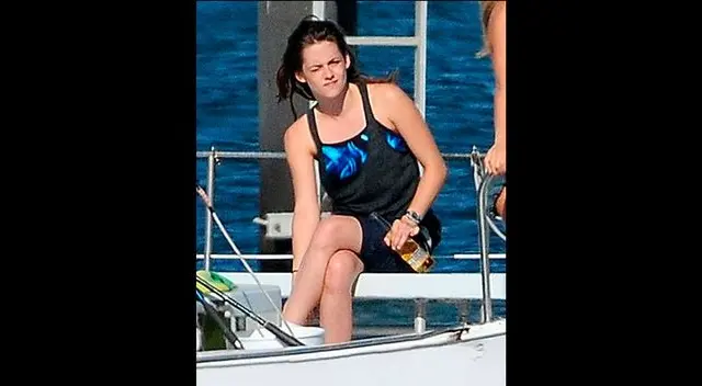 Luego de la agitada filmación Kristen Stewart se despojó de su uniforme y volvió a su look casual y posteriomente lució un sexy traje de baño. Tomó un sorbo de una cerveza bien fría, mientras que sus compañeros de reparto en bromeaban sobre su apariencia militar en el film Camp X-Ray. Aún así la bella actriz siempre será una de las más sensuales de Hollywood.