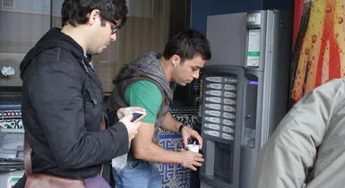 Eso parece decirle Renzo Schuller a su amigo del alma Gian Piero Díaz, luego que intempestivamente se parara en la máquina de café para tomar algo calientito.