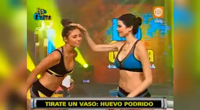 La enemistad entre las ex reinas se dio a relucir ayer durante un juego de nombre “Tírate un vaso: huevo podrido”, en donde lanzan una pregunta y la que no responde recibe un huevo en la cabeza. Pero no le cayó nada en gracia a Vértiz que su contrincante le ganará y encima le tirara el huevo de forma brusca.