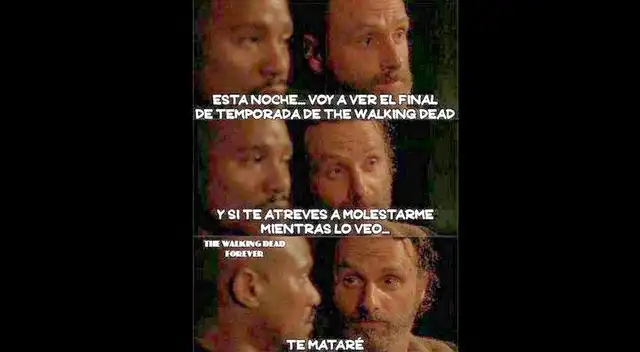 El último domingo se emitió el capítulo final de la quinta temporada de The Walking Dead en Estados Unidos y América Latina. Esto generó la creación de los tradicionales memes.MIRE ESTO: The Walking Dead: mira el teaser de 'Fear the Walking Dead'En ellas, los cibernautas mostraron su disconformidad por el tiempo de duración del programa, solo se dio 60 de los 90 minutos prometidos.Otro fue el humor mostrado a la habilidad de Morgan con el ‘Rokushaku Bo’ (especie de vara de madera) para exterminar a los zombies y a uno de los integrantes de 'Los Lobos'.NO falto aquellos que lamentaron el final del esta temporada y cuentan las horas para el inicio de la nueva entrega, el cual se daría en octubre de este año.