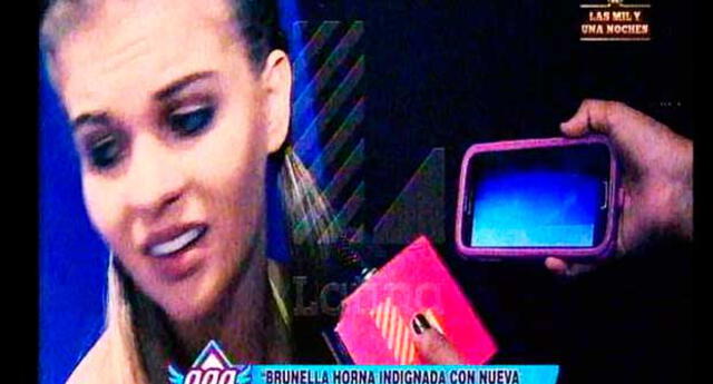 Brunella Horna volvió a perder el control y llorar ante las cámaras cuando una reportera de "Amor, amor,amor" le mostró unas imágenes de su ex Renzo Costa con una bella caribeña llamada Cherry Jáquez.