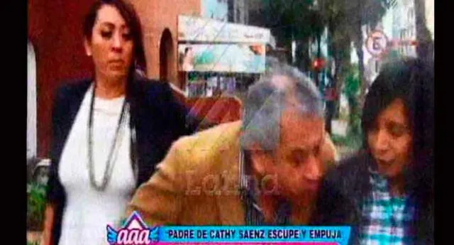 El padre de Cathy Sáenz escupió a una periodista del programa de Latina, que intentaba obtener declaraciones sobre el proceso legal que entabló la productora de Esto es guerra a los conductores del espacio de espectáculos.
