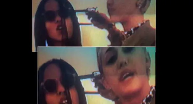 En estas imágenes, la diva aparece apuntando con un arma a Zoe Kravitz, la hija de Lenny, en el video Bitch de su banda LolaWolf. También se ve cómo la morocha le coloca los ojos al trasero de la cantante. Esas fotos se volvieron polémicas.