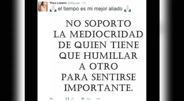 “El tiempo es mi mejor aliado”, escribió junto a una imagen que decía “No soporto la mediocridad de quien tiene que humillar a otro para sentirse importante”.