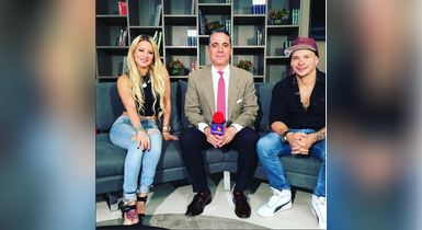 La pareja de moda colgaron en las redes sociales imágenes de entrevistas que les realizó la prensa azteca, entre ellos la cadena musical Ritmoson Latino y TV Azteca.