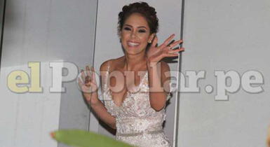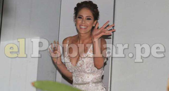 “Estoy feliz. Gracias por venir. Como los escuché, decidí salir a saludarlos. ¿Nerviosa? Más que nerviosa estoy ansiosa, quiero darle el sí nuevamente. Gracias por estar acá”, dijo la novia por la ventana del segundo piso de la casa donde se casó. Ezio Oliva llegó impecablemente vestido a las 6:45 pm.