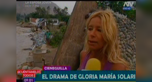 La actriz Gloria María Solari es otra de las víctimas de los huaicos que ha visto como la furia de la naturaleza se ha llevado todo. Ella ha sido afectada en el terreno que tiene en Cieneguilla.