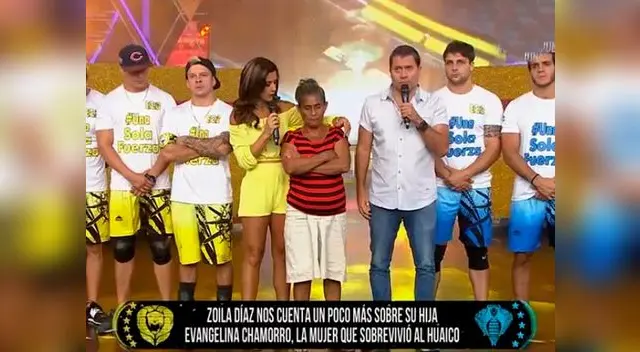 Pusieron su granito de arena. Los integrantes del programa de competencias Esto Es Guerra dieron una cálida bienvenida a Zoila Díaz, madre de la sobreviviente del huaico de Punta Hermosa, Evangelina Chamorro.