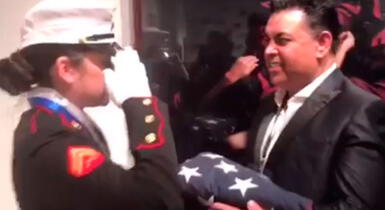 El presentador de TV recibió de manos de una marine americana la bandera de los Estados Unidos, máximo galardón de ese país con el que se premia a distintas personalidades del mundo.