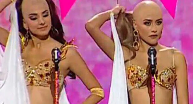 De manera sincronizada, cada grupo conformada por 3 candidatas daban su discurso y la cifra sobre las víctimas que padecen de esta enfermedad. Luego se retiraban la peluca y desfilaron con las cabezas rapadas.