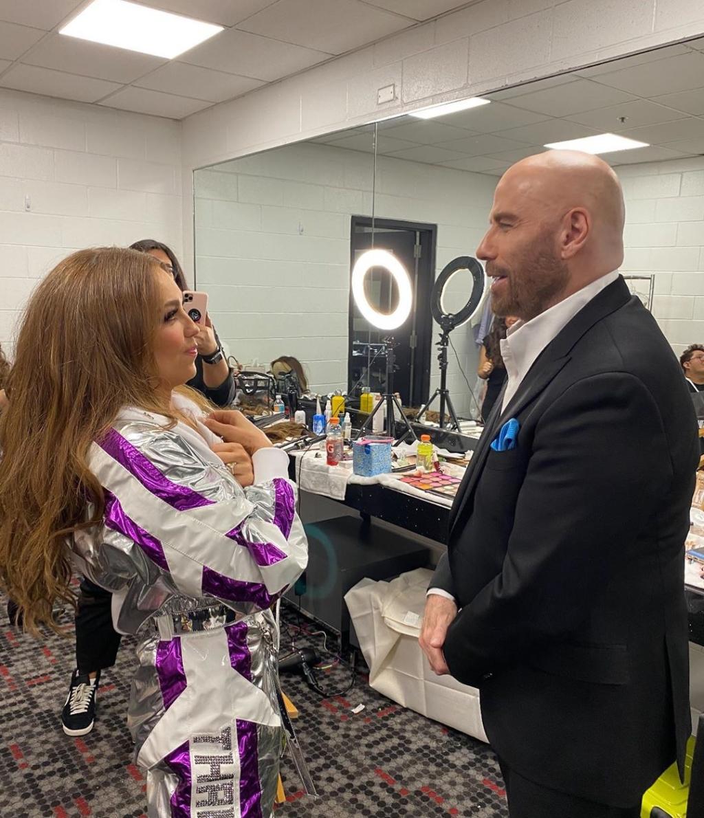 “Thalía conoce a su ídolo de la infancia, John Travolta, justo ahora en el camerino de Premio Lo Nuestro”, escribió el productor en su red social.