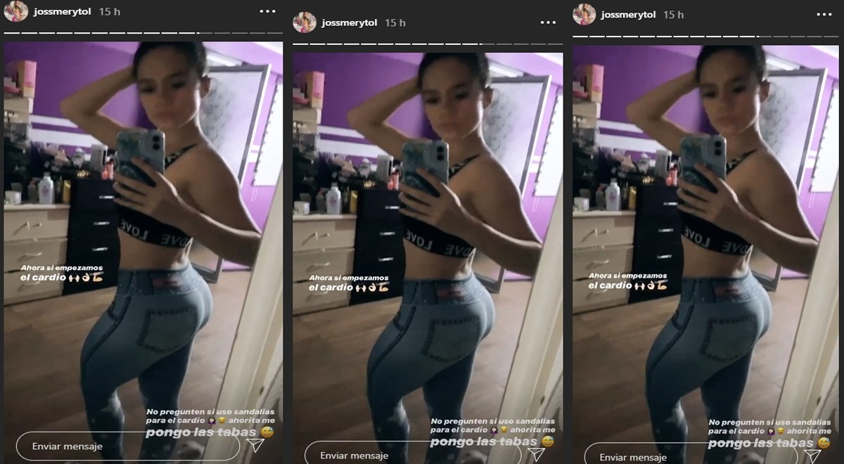 Esta vez compartió una historia en esta misma red social donde muestra cómo se prepara para hacer sus ejercicios. Jossmery Toledo antes de empezar se toma una fotografía frente al espejo luciendo orgullosa su escultural figura.