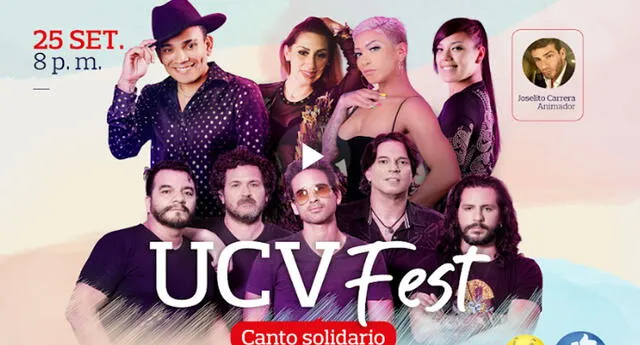 La cita es este viernes 25 de setiembre a las 8 de la noche. Si quieres cantar y bailar juntos a tus artistas favoritos, y además ayudar a esta noble causa, solo debes registrarte en el siguiente enlace: https://www.ucv.edu.pe/ucvfest/