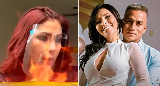Las cámaras de Amor y Fuego captaron a la cantante sumamente afectada y discutiendo con el futbolista luego de ver las imágenes del ampay en el set del programa de Willax Televisión.