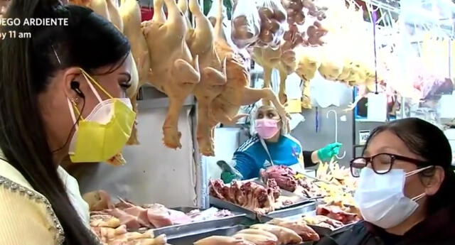 Melissa Paredes llegó al mercado de Breña para entrevistar a las caseras, y una mujer se mostró preocupada por alza del pollo y otros productos.
