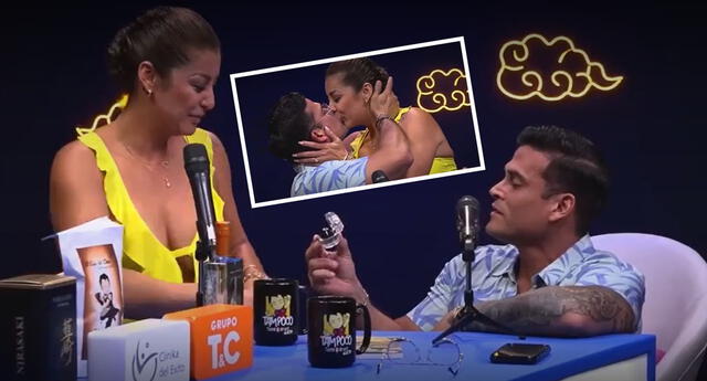 Christian Domínguez y Karla Tarazona fueron invitados en el podcast de Kenji Fujimori y sorprendieron al protagonizar su primer romántico momento luego de anunciar que son pareja de nuevo.