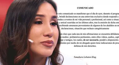 Samahara Lobatón emitió un comunicado para dar a conocer que tomará drásticas medidas tras las amenazas que viene recibiendo.