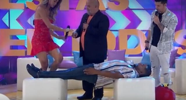 Sheyla Rojas con temor a lastimar a su compañero del programa siguió al pie de la letra las instrucciones del hipnotizador.