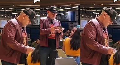A través de las redes sociales, circula un video donde se aprecia al presentador de TV acercándose a una mesa ocuapda por dos mujeres. Sin embargo, lo llamativo estuvo en lo que carga, pues parece ser que lleva un paquete de volantes y ello lo habría entregado.