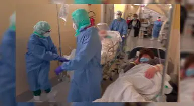 Un video de la agencia de noticias Sky News muestra cómo los doctores y enfermeras de un hospital de Italia luchan contra el tiempo y atienden a la vez a decenas de pacientes infectados de coronavirus COVID-19.